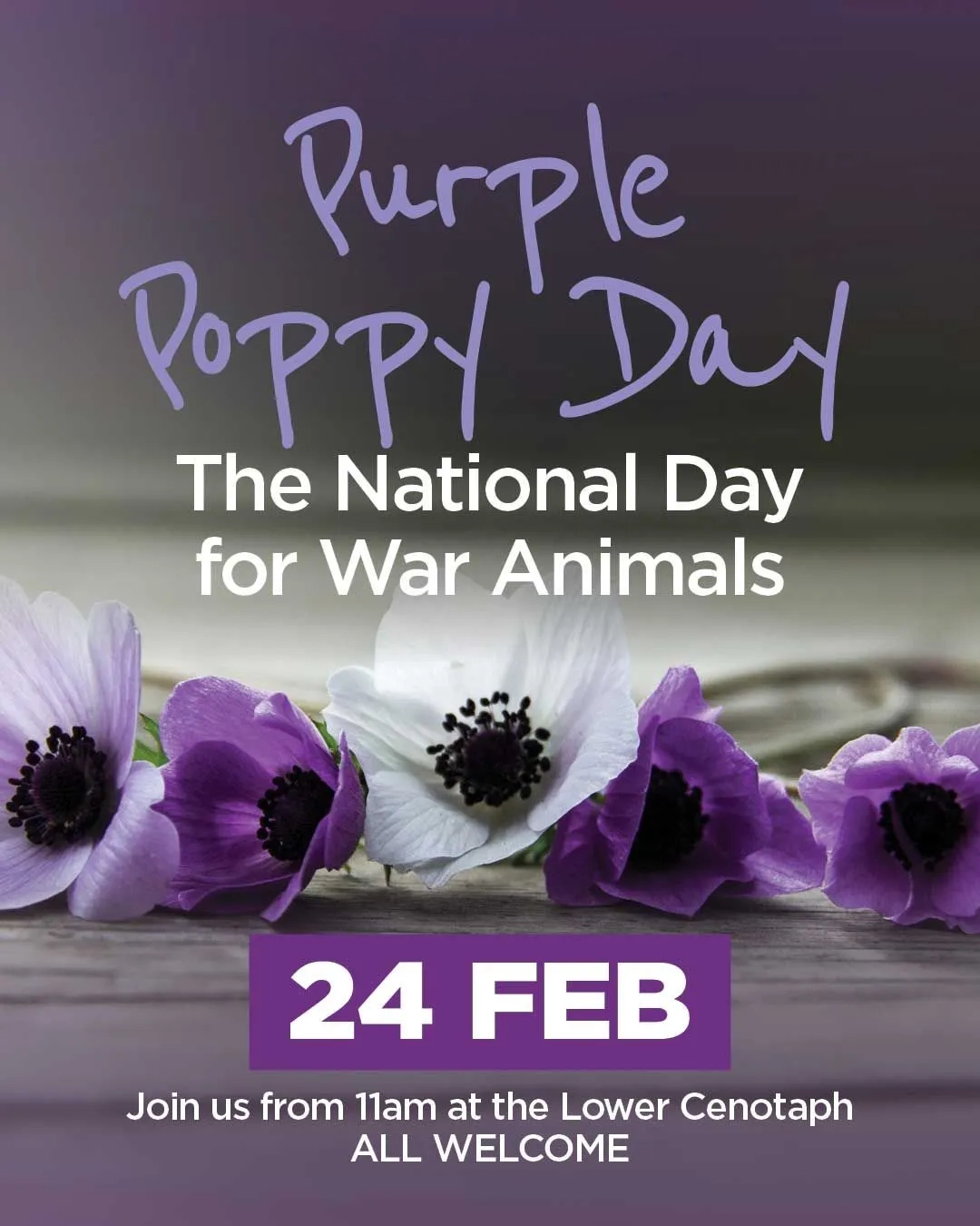 The community is invited to attend the fifth Purple Poppy Day Service, held to honour all animals currently serving, those who have served, and those who have died in conflicts.